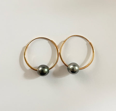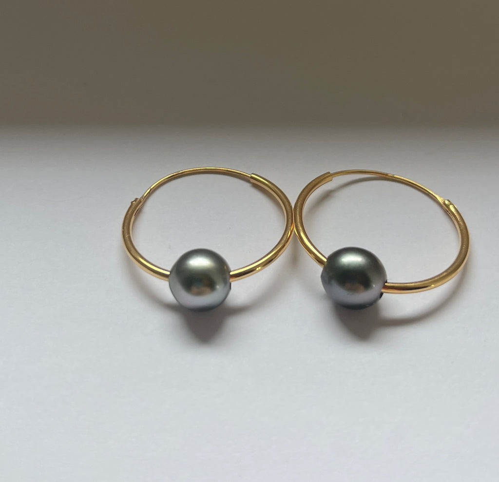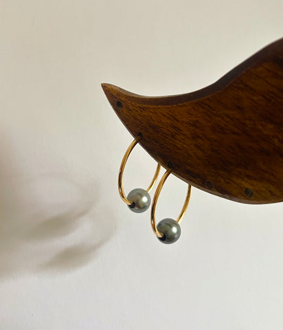 Créoles en or gold filled (plaquage or 14k plus épais qu'un plaquage classique) avec deux jolies perles de Tahiti