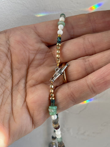 Au fermoir, un apprêt en T fait en argent 925 se marie bien avec le tout.