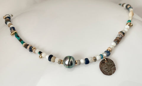 Magnifique collier au design antique réalisé avec pleins de belles perles, unique !