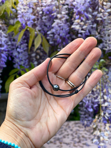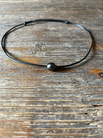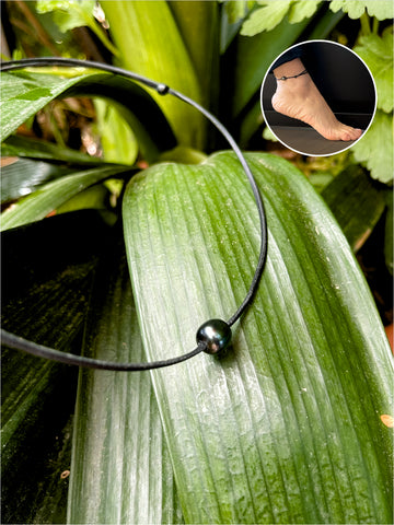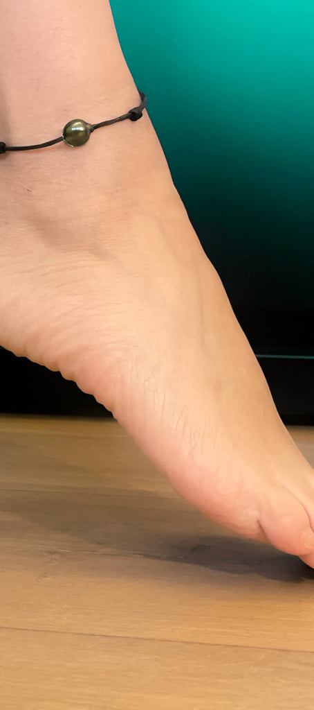 Belle perle de Tahiti montée sur un cuir australien. Bracelet de cheville femme, homme, adolescent.