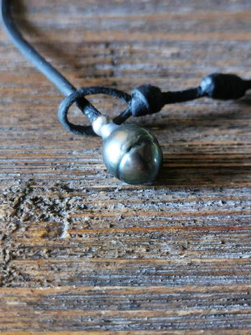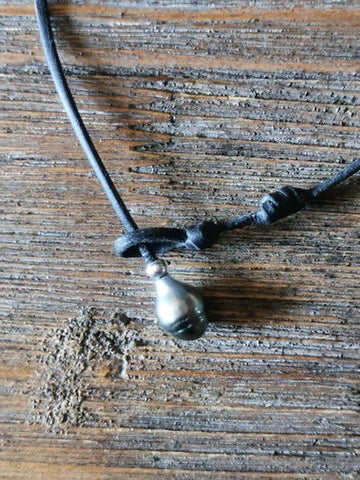 Le cuir offre un très joli contraste avec la perle de Tahiti argenté, le tout rehaussé par la petite perle en argent massif.